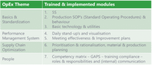 • Geïmplementeerde standaarden (5S in de fabriek en SOP’s voor operators & technicians aan machines)