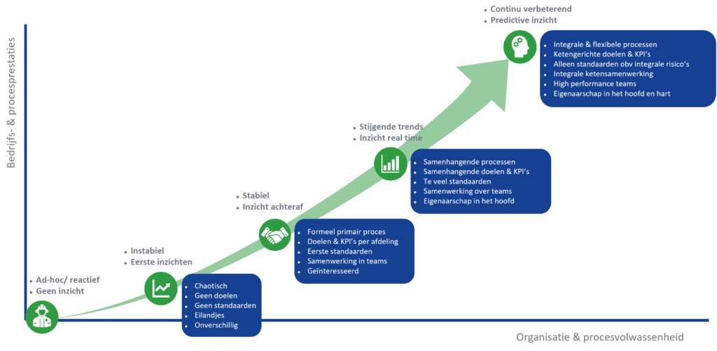 De kracht van OpEx zit in de samenhang. Performance management zonder leiderschap blijft een papieren exercitie. Procesverbetering zonder gedeelde doelen levert losse initiatieven op. Pas door de drie pijlers integraal en samen te ontwikkelen, groeit de organisatie echt in volwassenheid.