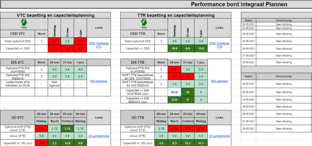 Dit doen we (afhankelijk van de aard van het proces) iedere maand, week, dag en shift. Ook kijken we terug naar de afwijkingen van de dag ervoor, zodat de oorzaak ervan wordt begrepen en kan worden weggenomen. Op deze manier maken we een voorspelbaar, betrouwbaar proces voor klant, wat tegelijk efficiënt is voor het bedrijf. Onverwachte gebeurtenissen voor de klant. Wachturen en inefficiëntie voor het bedrijf behoren hierna tot het verleden.